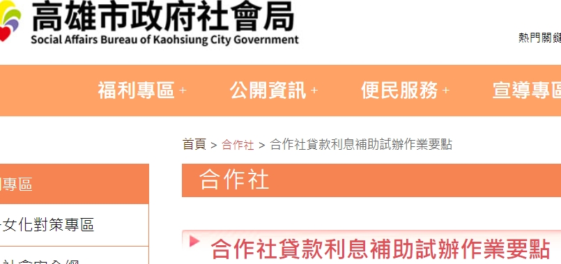 1.計畫名稱:合作社貸款利息補助試辦作業要點