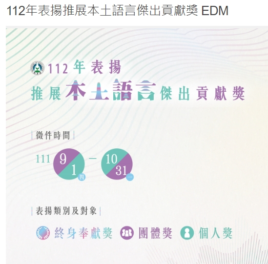 3.表揚計畫:112年表揚推展本土語言傑出貢獻獎