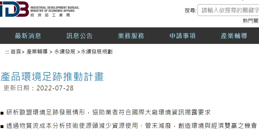●相關鏈接經濟部-政府對企業整合單一服務入口網_輔導補助資源_產品環境足跡推動計畫 (moea.gov.tw)